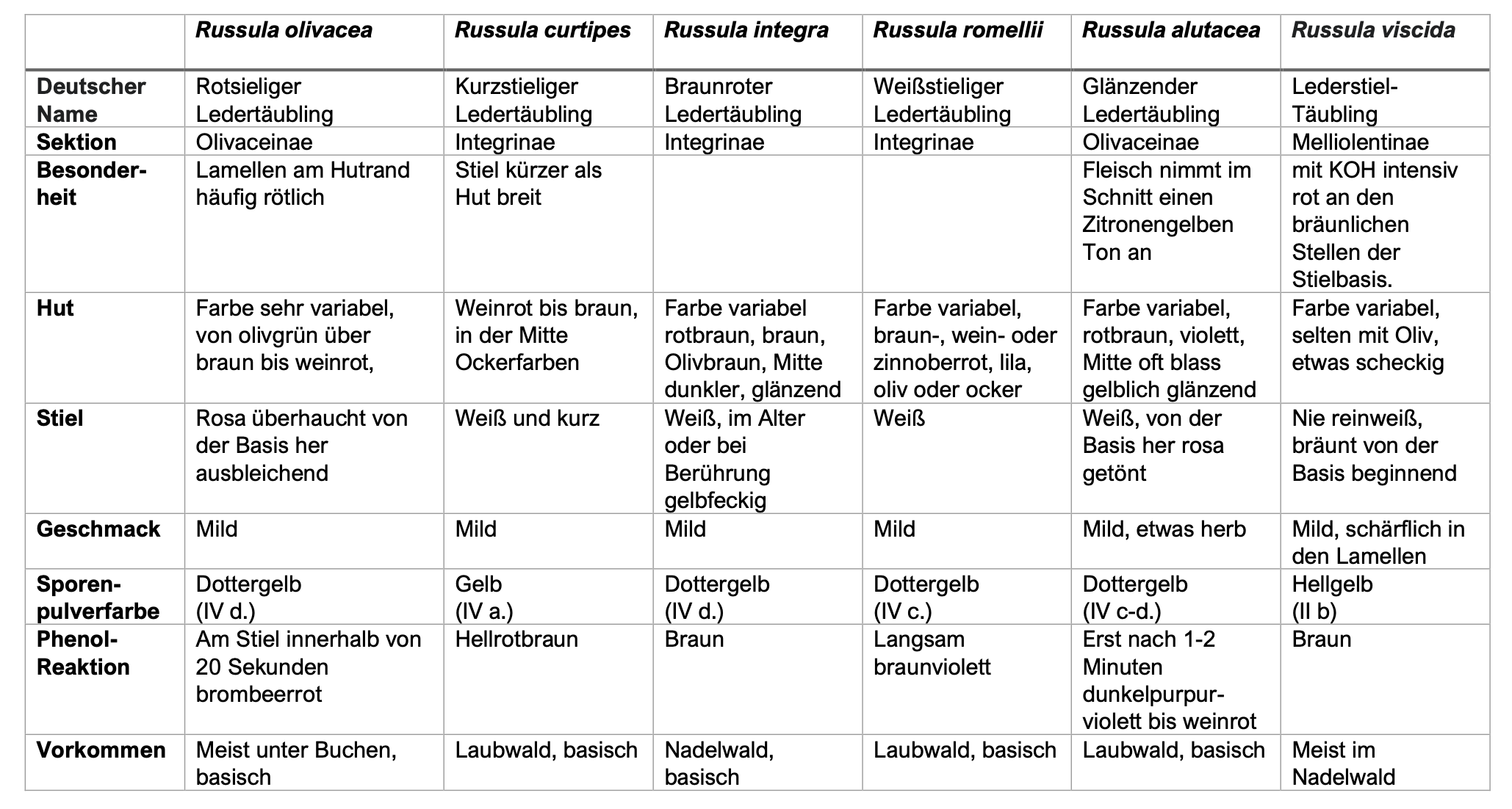 Andere Täublingsarten – besonders andere Ledertäublinge (siehe obige Tabelle)