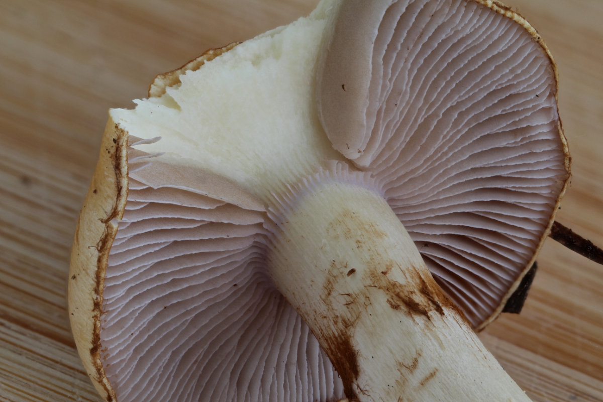 - Relativ lang violettbleibende Lamellen, bevor sie im Alter rostbraun werden.