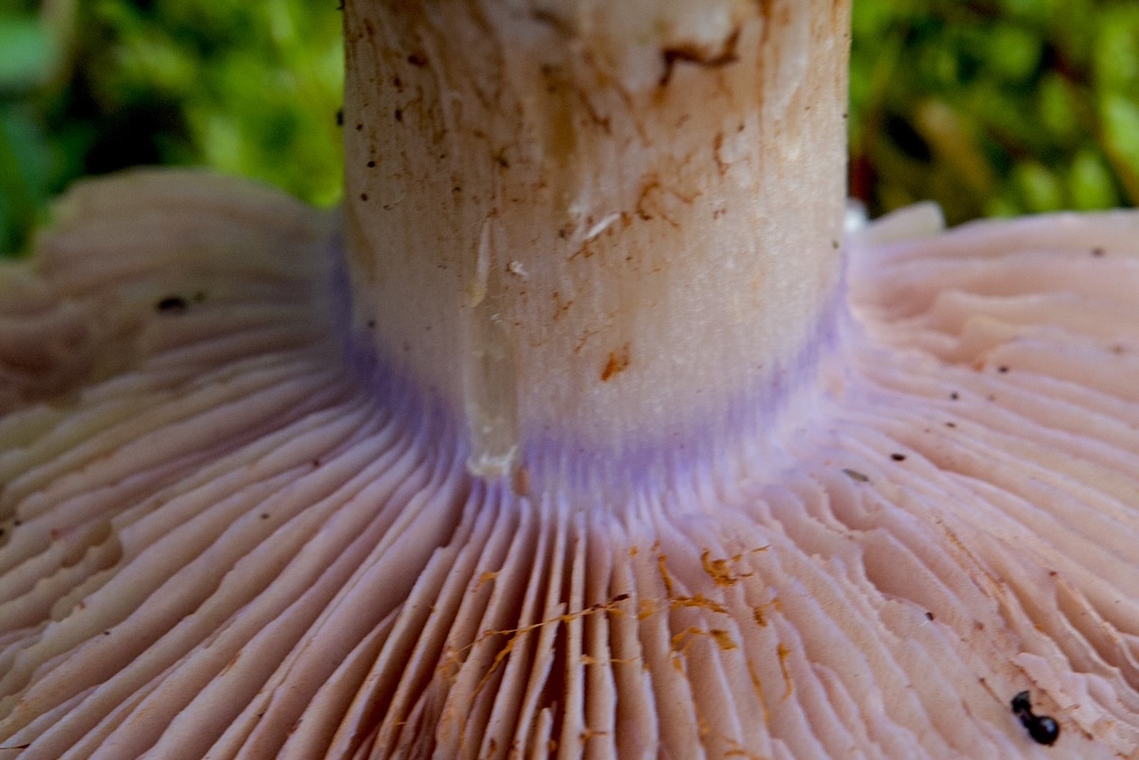 - Violette Stielspitze – bricht man den Hut ab, so bilden die Lamellenansätze einen violetten Ring (auch bei alten Pilzen). Dieser violette Ring ist bei jungen Exemplaren schon da, bevor die Lamellen lila werden.